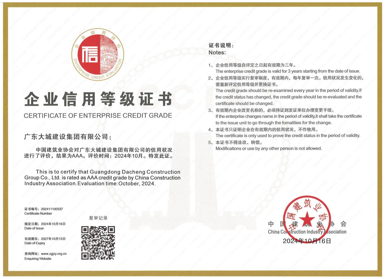 我司榮獲全國“建筑業AAA級信用企業”稱號
